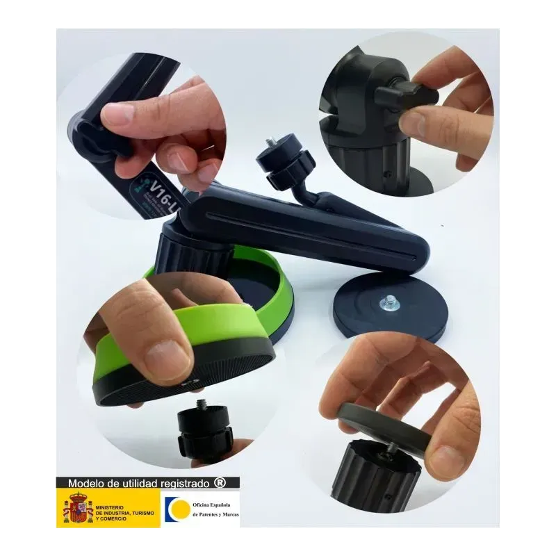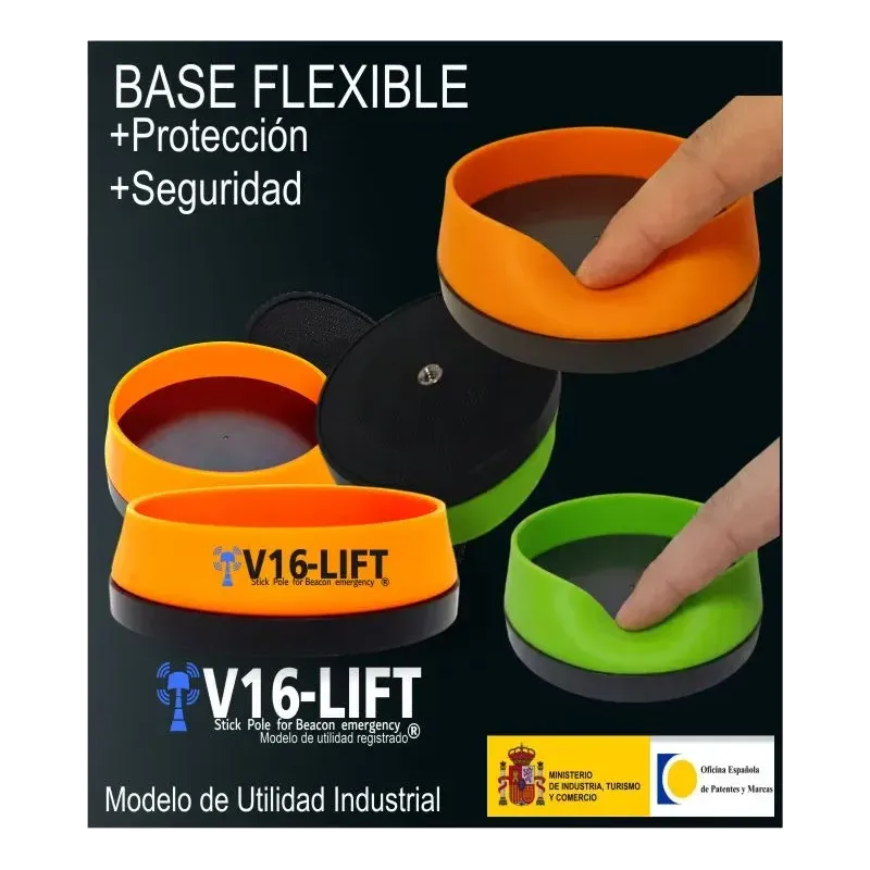 Este soporte permite una fácil instalación, ajuste en altura y retirada de la baliza, asegurando una visibilidad óptima y cumplimiento con las normativas de seguridad vial..